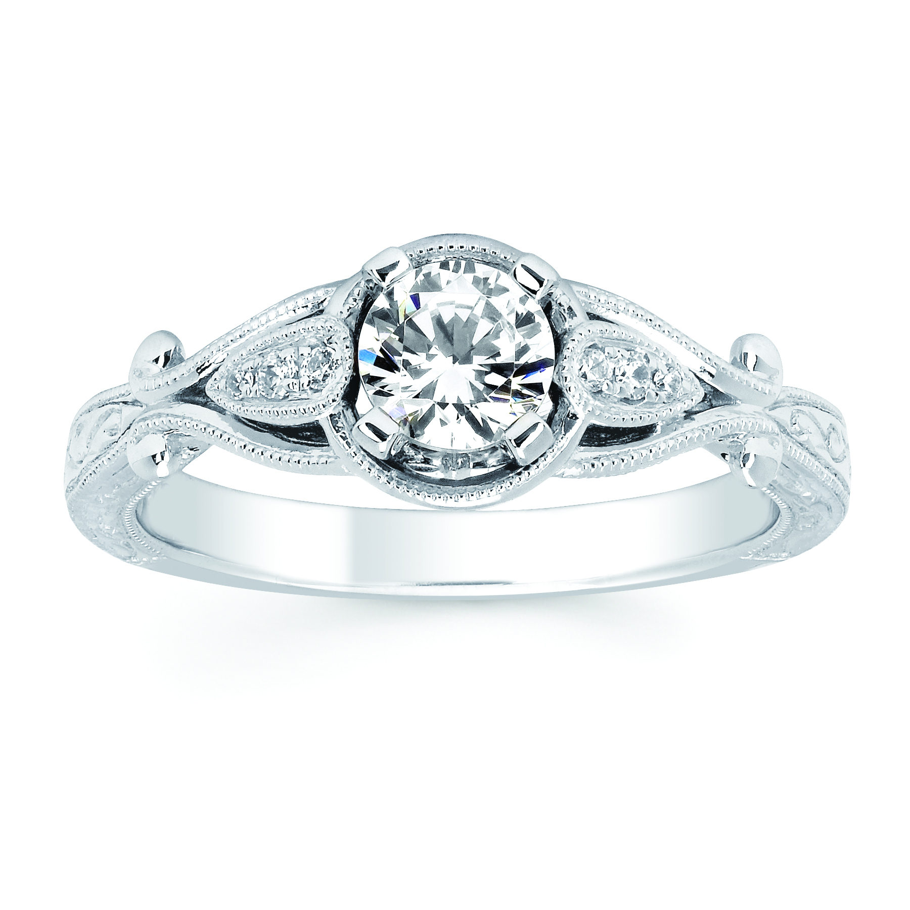 Engagement Ring Forever ElegantĀ® 1/8 Ctw. Diamond Semi Mount shown with 1/2 Ct. Round Center Diamond in 14K Gold